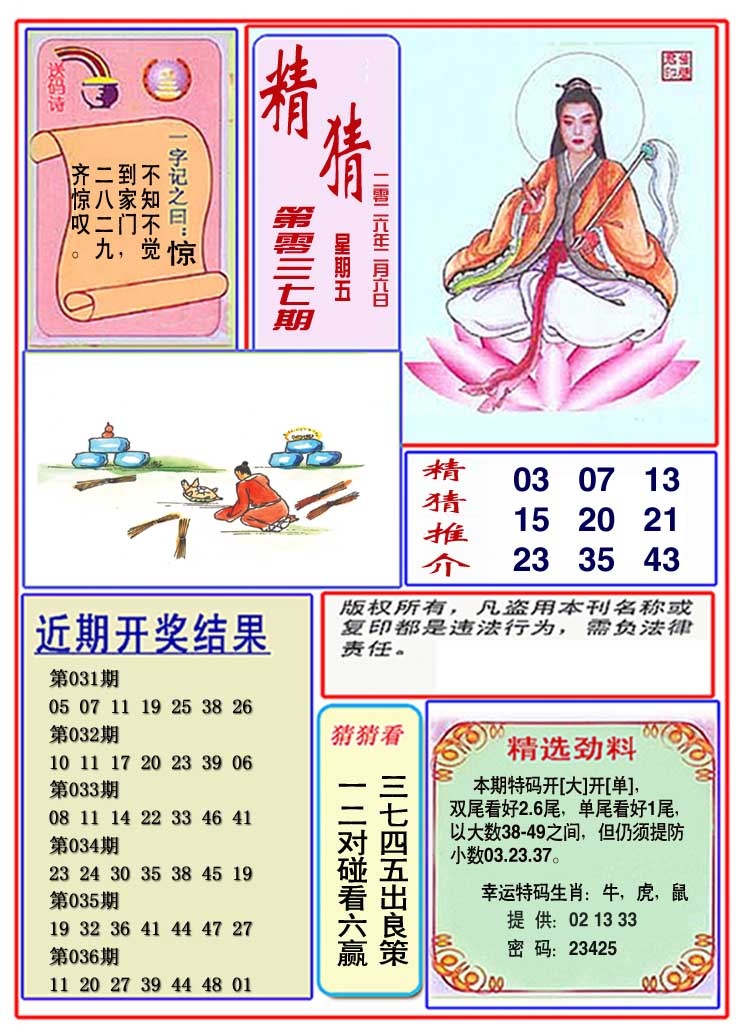 037期: 澳门六合彩 『秘典玄机图』已更新